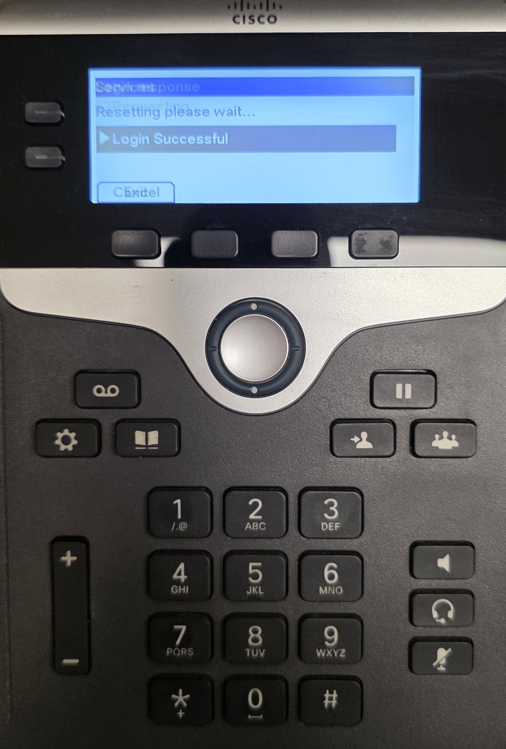 - After entering your login, you should get a "Login Successful" message, and the phone will do a quick reset. It should them come up with your extension and name for this session.